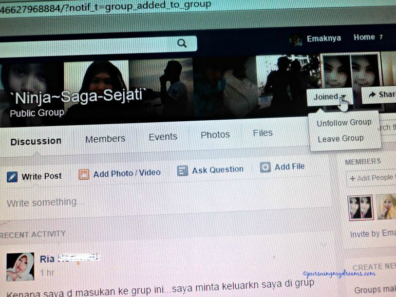 Nah kemarin saya dimasukkan ke grup di facebook. Namanya `Ninja~Saga-Sejati` . Sampai detik ini saya tidak tahu itu grup apaan dan untuk tujuan apa dibuat. Isinya orang-orang yang marah-marah karena dimasukkan kesana, dan mereka semua minta dikeluarkan.